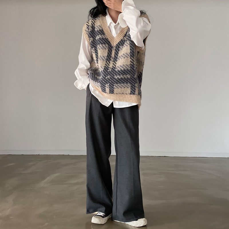 Elevate your style with our Loose Sweater Women's Plaid Knitted Vest Top. This versatile piece is perfect for the modern woman who appreciates a blend of comfort and fashion. Designed with a simple commuter and Korean-inspired aesthetic, this vest top effortlessly transforms your outfit from ordinary to extraordinary.